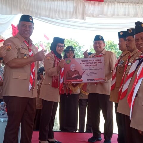 Apel Besar Hari Pramuka Ke 62 tahun 2023 Menyerahkan Hibah Rp700 Juta Pada Kwarcab Indramayu