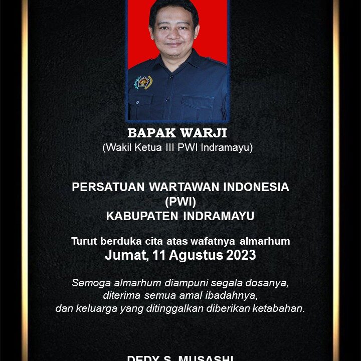 PAKKAR.ORG-INDRAMAYU JAWA BARAT:Ketua PWI Indramayu melepas pemberangkatan jenazah alm.Wartawan Warji Supriyadi , dari rumah duka BTN.Margalaksana II Indramayu ke pemakaman..Jumat 11/8/2023.Sejumlah wartawan bertugas liputan Kabupaten Indramayu Jawa Barat. Merasa kaget dari informasi Alm Warji Supriyadi dari Radar Cirebon Jawa Pos Grup Liputan Unit Pokja Polres Indramayu. Di PWI Indramayu alm.Warji Supryadi tercatat sebagai Wakil.ketua III.…