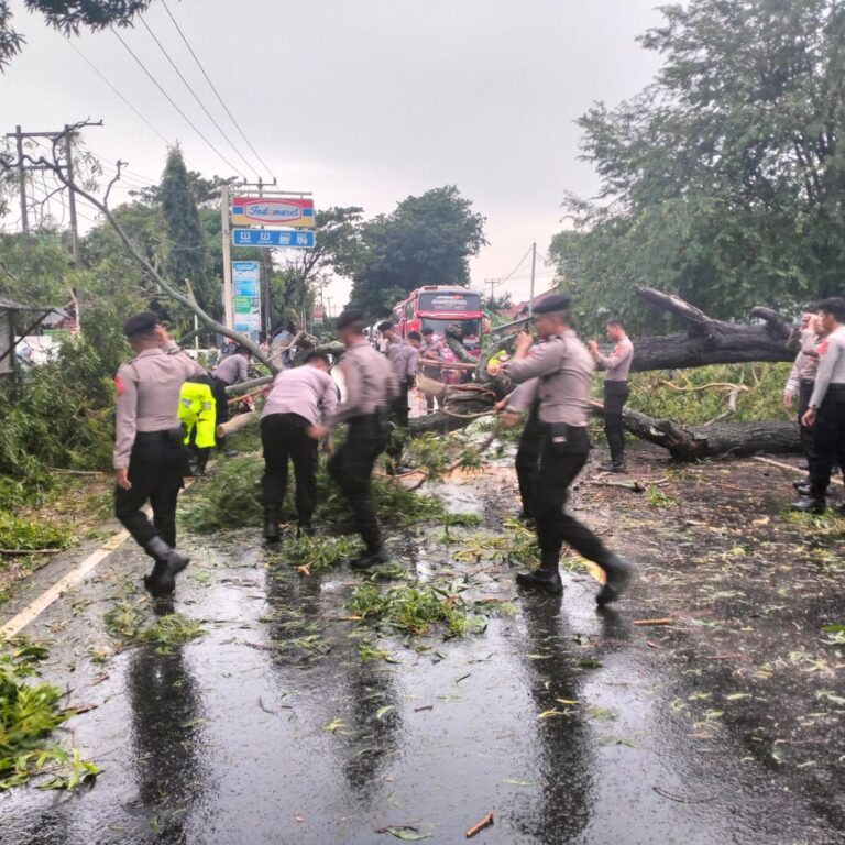 Gerak Cepat Polisi Evakuasi Pohon Tumbang Membuat Arus Lalu Lintas Kembali Normal