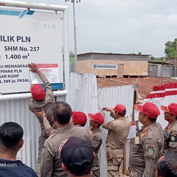 Satpol PP Kabupaten Indramayu Segel Proyek Pembangunan Gedung ULP PLN Di Cikedung