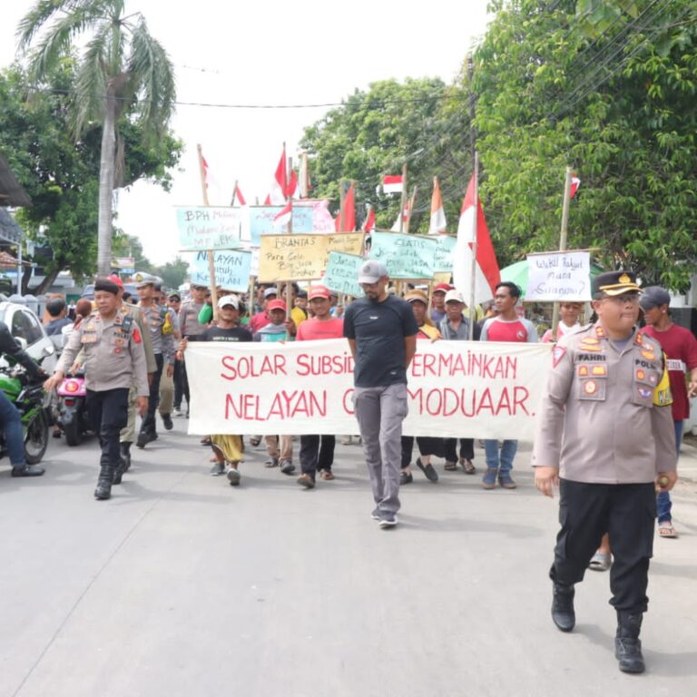 Polres Indramayu Berikan Pelayanan Humanis Dalam Mengawal Aksi Damai Nelayan Eretan