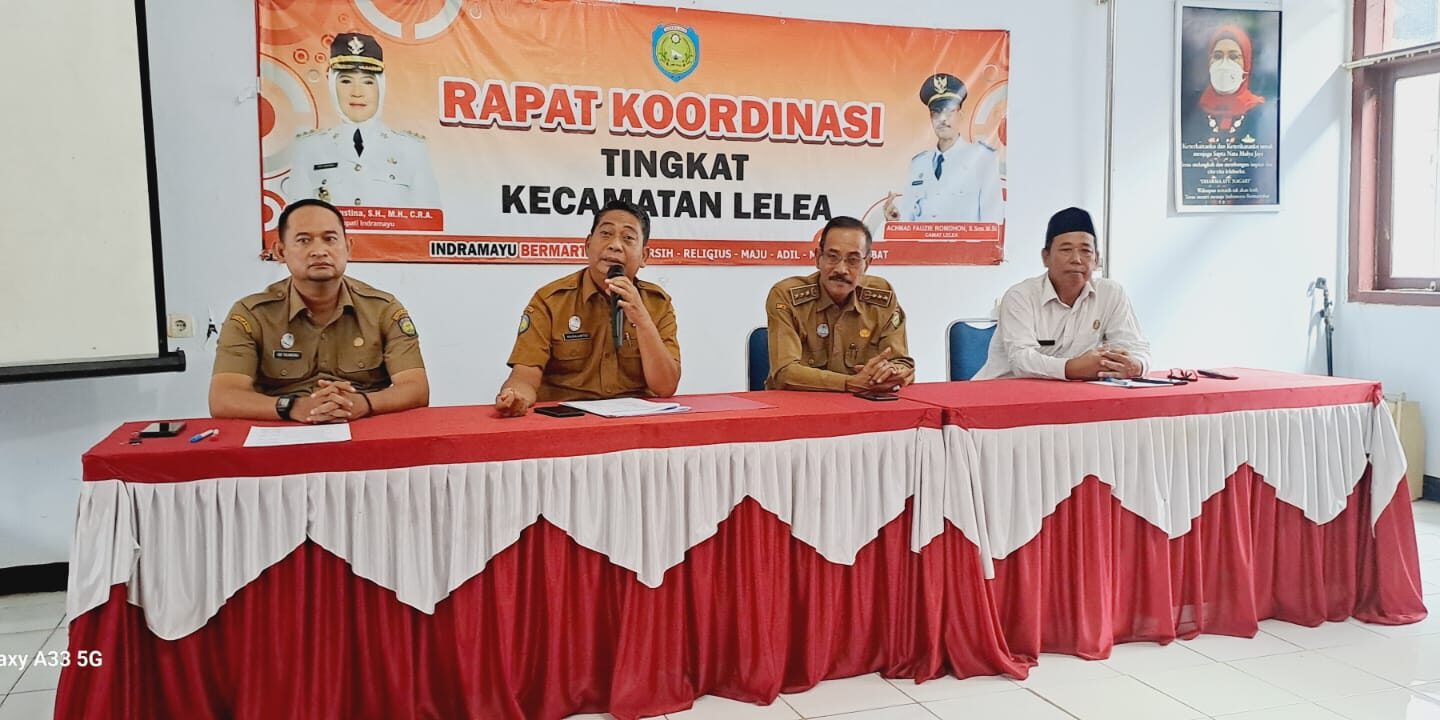 PAKKAR>ORG – INDRAMAYU JAWA BARAT:Camat Lelea Achmad Fauzie Romdhon, S.Sos., M.Si menggelar rapat koordinasi dengan Ketua Badan Amil Zakat Nasional (Baznas) Kecamatan Lelea, Kabupaten Indramayu dihadiri Ustadz Syuhada SE., dan para Kuwu se-Kecamatan Lelea. Senin (25/03/2024). Dalam rangka Kunjungan Kerja (Kunker) Bupati Indramayu Hj. Nina Agustina SH MH C.R.A., pada Rabu tanggal 27 Maret 2024 yang bertempat di Aula Kantor Kecamatan Lelea Kabupaten Indramayu Jawa Barat.