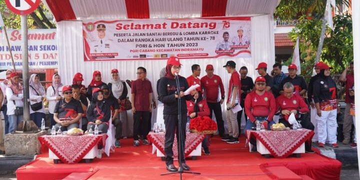 PAKKAR.ORG-INDRAMAYU JAWA BARAT:Kegiatan gerak jalan santai dalam rangka hari ulang tahun Ke-78 PGRI dan Hari Guru Nasional Tahun 2023 yang diselenggarakan PGRI Kecamatan Indramayu berlangsung dengan meriah dan sukacita.Bertempat di depan Kompleks UPTD SDN 5 dan 6 Margadadi, Sabtu (18/11/2023), kegiatan gerak jalan santai dilepas langsung Bupati Indramayu, Hj. Nina Agustina yang didampingi Plt.