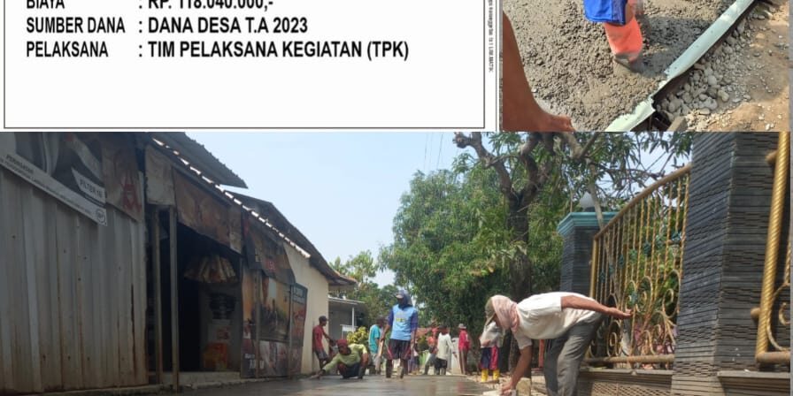 Pembangunan jalan yang sudah terealisasikan sesuai dasar musyawarah desa yang telah disepakati bersama,” tuturnya, Sabtu (20/05/2023)Karena adanya program keuangan bantuan Dana Desa (DD) yang berdampak pada infrastruktur dan roda perekonomian Desa, disitu berbagai program infrastruktur telah kami optimalkan demi mengangkat kesejahteraan dan perekonomian warga,” ujarnya.