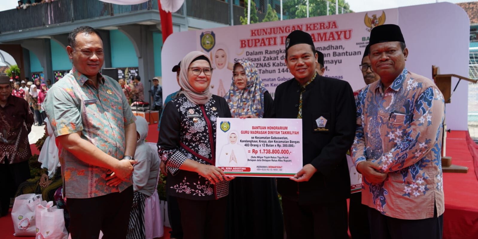 Pada hari Selasa (19/3/2024) Bupati Indramayu Nina Agustina Di eks Kawedanan Haurgeulis menyalurkan insentif yang jumlahnya mencapai Rp2,3 miliar. Terbaru di eks Kawedanan Kandanghaur, Kamis (21/3/2024) disalurkan insentif senilai Rp 1,7 miliar.Insentif yang diberikan kepada guru madrasah Diniyah Takmiliyah Awaliyah (DTA) itu sebagai bentuk kepedulian Nina Agustina. Terlebih, insentif itu didistribusikan tepat di bulan Ramadan menjelang Hari Raya Idul Fitri.