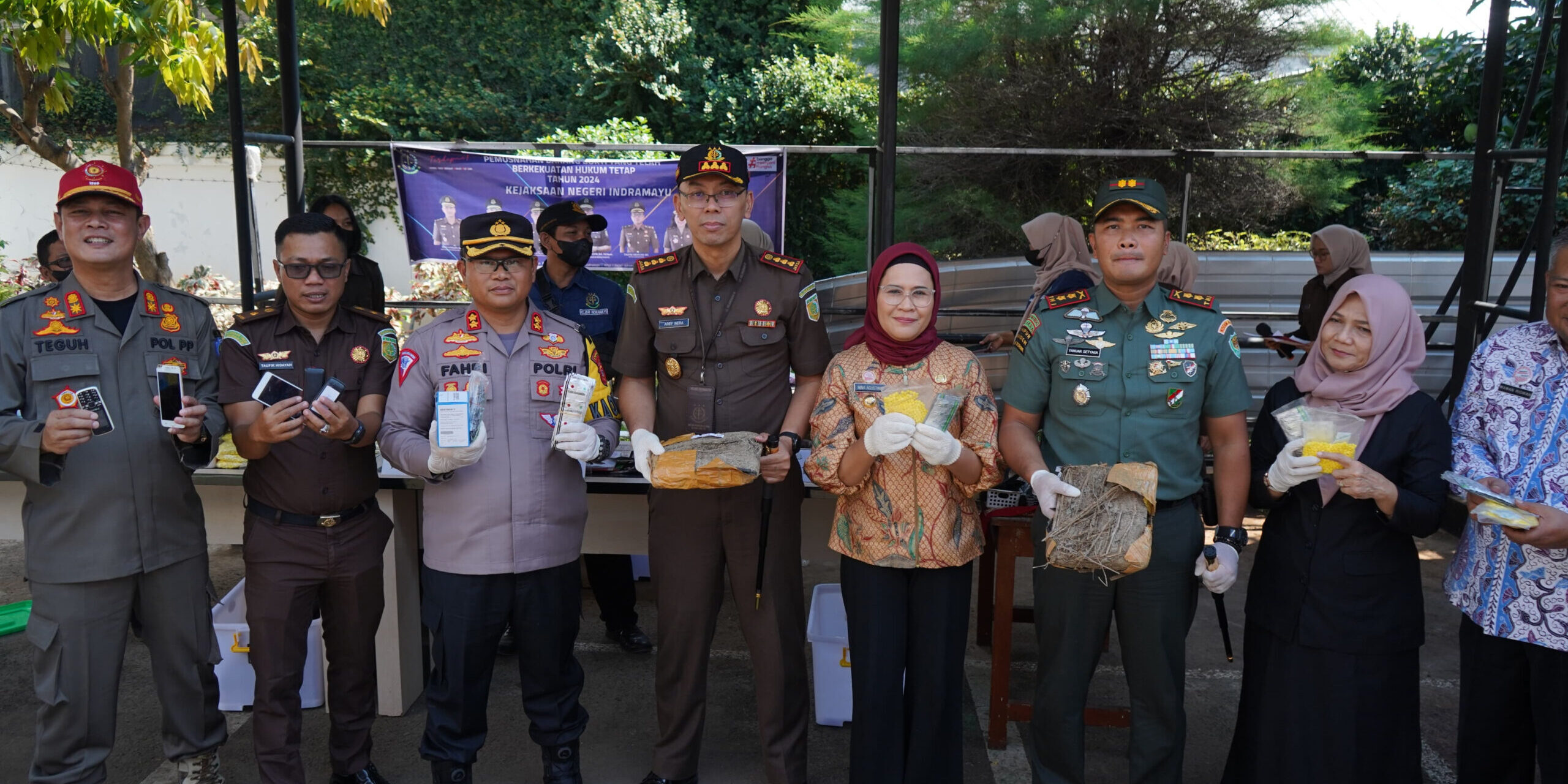 Pemusnahan barang bukti tersebut dilakukan setelah penandatanganan berita acara oleh Kepala Kejaksaan Negeri Indramayu (Kajari) didampingi dan disaksikan oleh Bupati Indramayu Nina Agustina, Ketua Pengadilan Negeri Indramayu, Kapolres Indramayu, Dandim 0616 Indramayu, Kepala Lapas Indramayu, Karupbasan, Kasatpol PP & Damkar, Kepala Dinas Kesehatan Indramayu, Kepala Dinas Pendidikan dan Kebudayaan Indramayu serta tamu undangan lainnya.