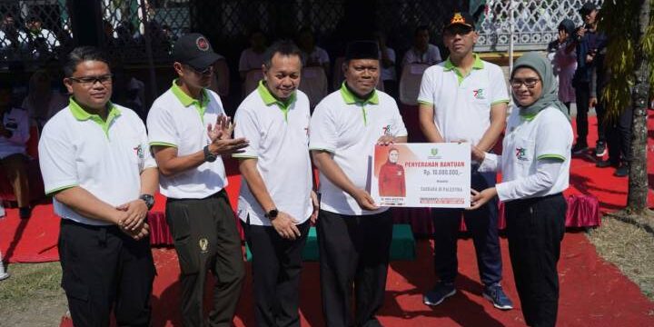 PAKKAR.ORG-Bupati Indramayu Hj. Nina Agustina didampingi Kepala Kementerian Agama (Kemenag) Kabupaten Indramayu Mulyadi melepas ribuan peserta jalan sehat kerukunan dalam rangka memperingati Hari Amal Bakti Ke-78 Kemenag-RI tingkat Kabupaten Indramayu, Rabu (22/11/2023).