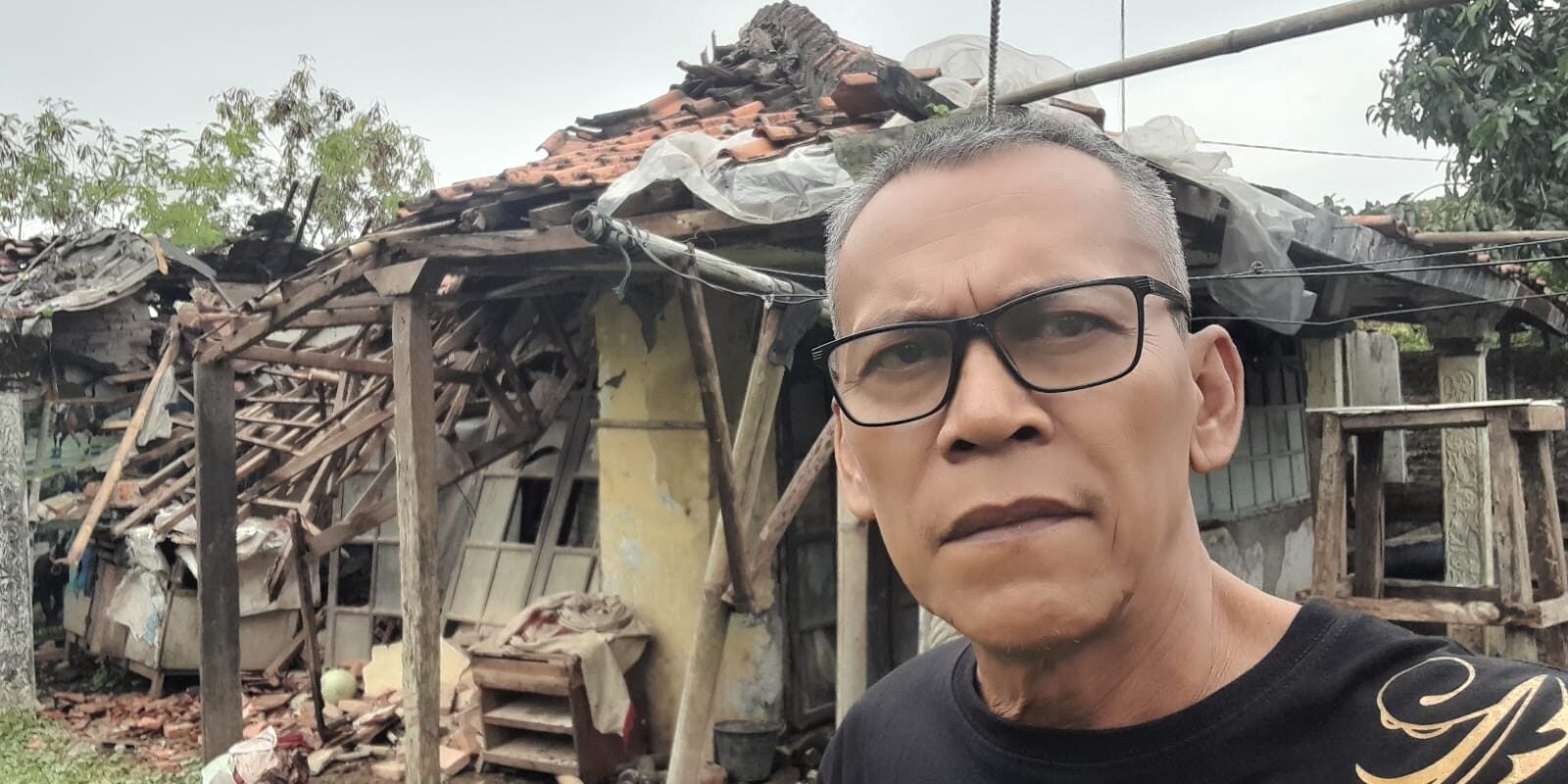 Lima Penghuni Rumah Bangunan Tua Ambruk Roboh Akibat Angin Kencang Hujan Deras