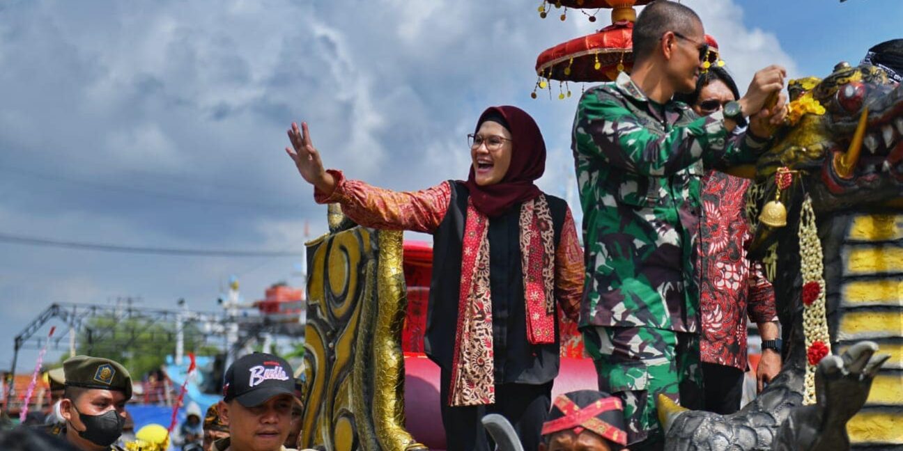 PAKKAR.ORG-INDRAMAYU JAWA BARAT:Bupati Indramayu Nina Agustina bersama Anggota DPR RI Ono Surono menghadiri Adat Nadran Nelayan Karangsong Tahun 2023, di Kantor Koperasi Perikanan Laut (KPL) Mina Sumitra Indramayu, baru-baru ini.