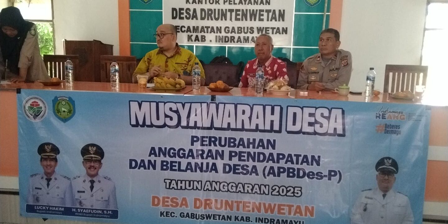 PAKKAR.ORG-INDRAMAYU JAWA BARAT:Pemerintah Desa Druntenwetan Kecamatan Gabus Wetan, Kabupaten Indramayu, menyelenggarakan Musyawarah Desa (Musdes) dalam rangka membahas Perubahan Anggaran Pendapatan dan Belanja Desa (APBDes-P) Tahun Anggaran 2025. Kegiatan yang berlangsung dengan khidmat tersebut dihadiri oleh unsur pemerintahan, aparat keamanan, tenaga kesehatan, tokoh masyarakat, serta perwakilan kelembagaan desa.