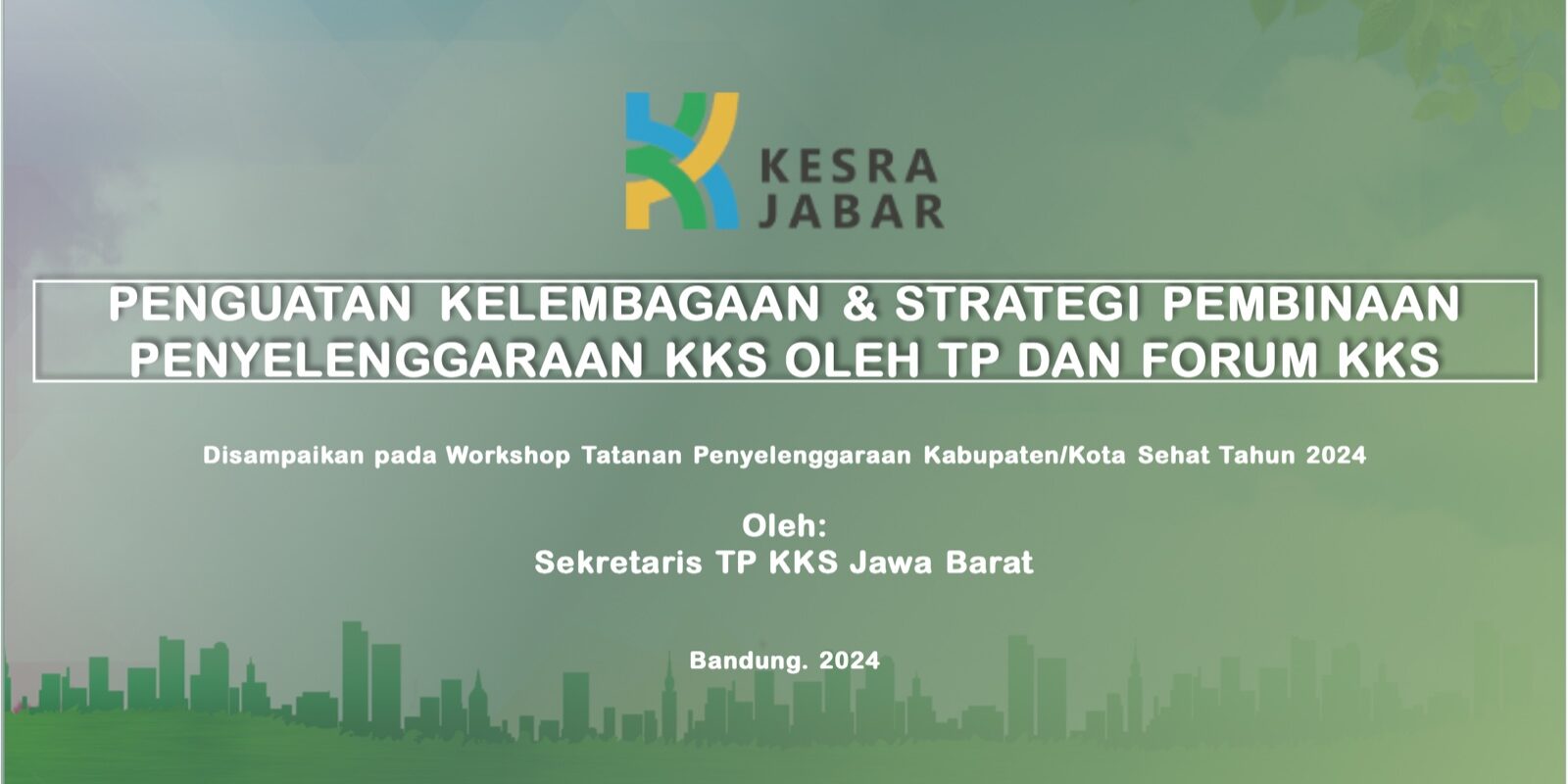 Analis Kebijakan Ahli Muda pada Biro Kesejahteraan Sekretariat Daerah Provinsi Jawa Barat, Muftiah Yulismi mengatakan, KKS merupakan upaya menciptakan suatu kondisi kabupaten/kota yang bersih, nyaman, aman dan sehat untuk dihuni penduduk yang dicapai melalui terselenggaranya penerapan beberapa tatanan dan kegiatan yang terintegrasi yang disepakati masyarakat dan pemerintah daerah.
