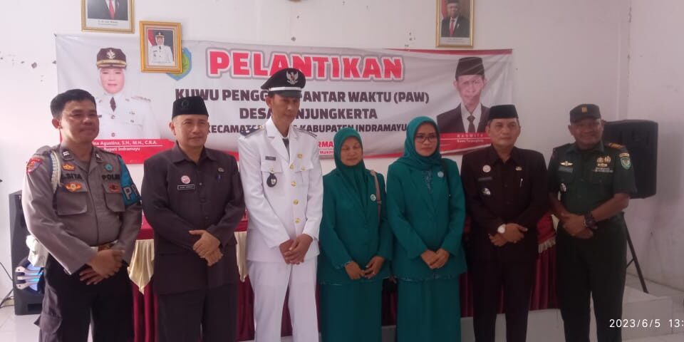 PAKKAR.ORG-INDRAMAYU JAWA BARAT:Bupati Indramayu Nina Agustina yang diwakili Asisten Daerah Pemerintahan dan Kesejahteraan Rakyat pada Sekretariat Daerah (Setda) Kabupaten Indramayu, Jajang Sudrajat melantik Rasmita sebagai Kuwu (Red: Kepala Desa) Penggantian Antar Waktu (PAW) Desa Tanjungkerta, Kecamatan Kroya, Kabupaten Indramayu.Prosesi pelantikan yang dilaksanakan di Aulah kecamatan Kroya , Senin (5/6/2023).