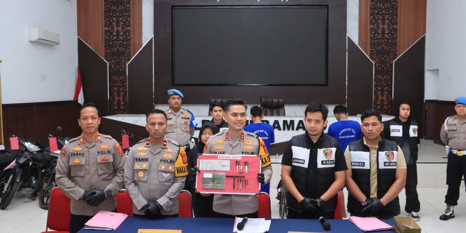 Dalam kasus ini, Polres Indramayu juga mengamankan sejumlah barang bukti berupa tujuh unit sepeda motor, satu set kunci huruf T beserta magnet, serta satu bundel BPKB dan STNK.“