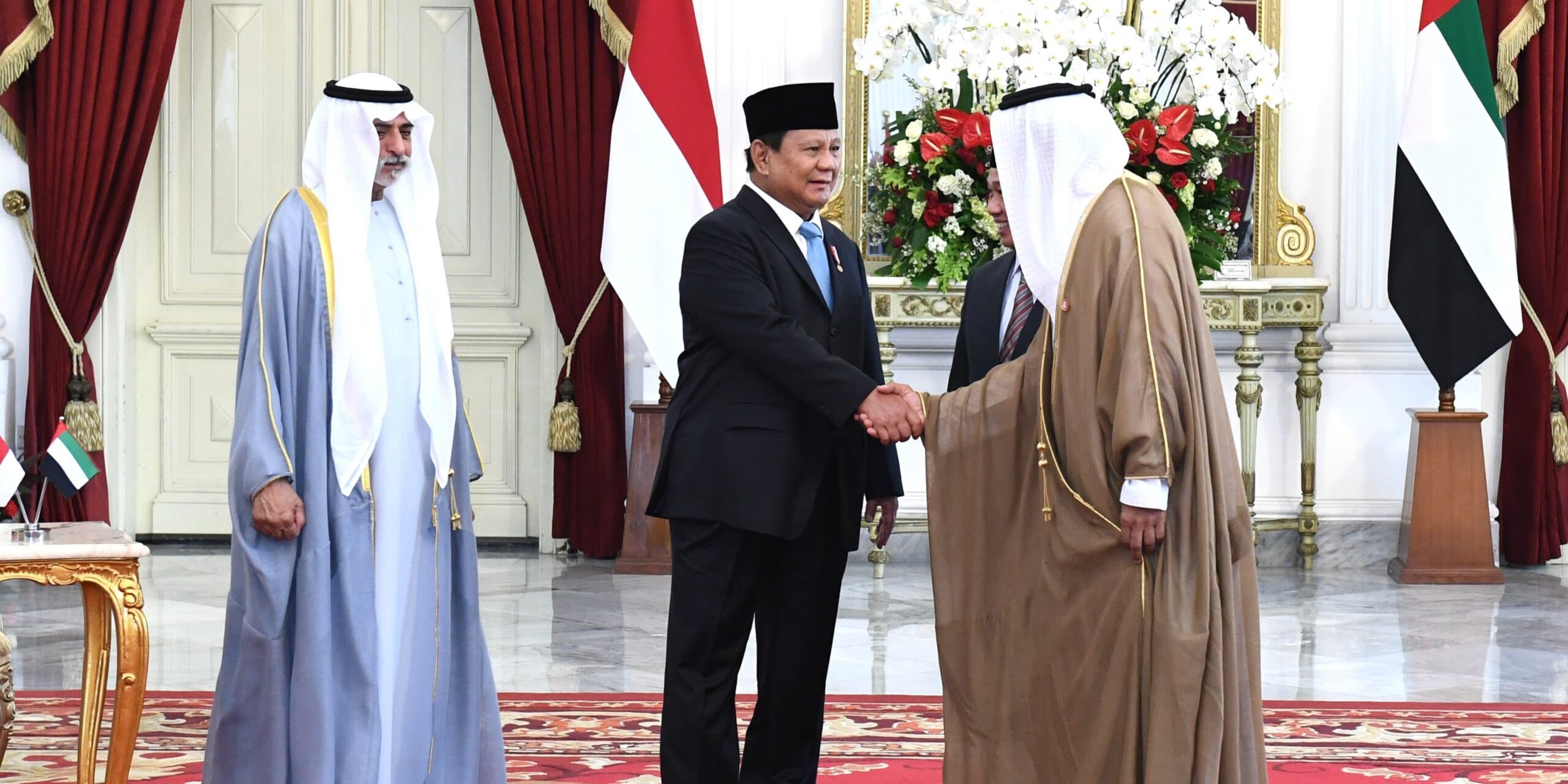 Utusan Khusus Presiden PEA, Sheikh Nahayan Mabarak Al Nahyan, tiba terlebih dahulu sekitar pukul 13.00 WIB. Disambut langsung oleh Presiden Prabowo di ruang kredensial, keduanya melakukan sesi foto bersama sebelum Sheikh Nahayan menandatangani buku tamu negara. Setelahnya, pertemuan terbatas berlangsung di Ruang Jepara, didampingi oleh delegasi dari kedua negara.