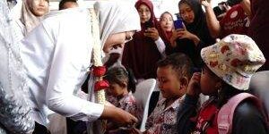 Dengan penuh senyuman, Nina Agustina menyapa dan menyalami warga satu per satu. Setelah itu langsung mengunjungi lokasi khitanan massal yang disambut keluarga anak yang dikhitan.