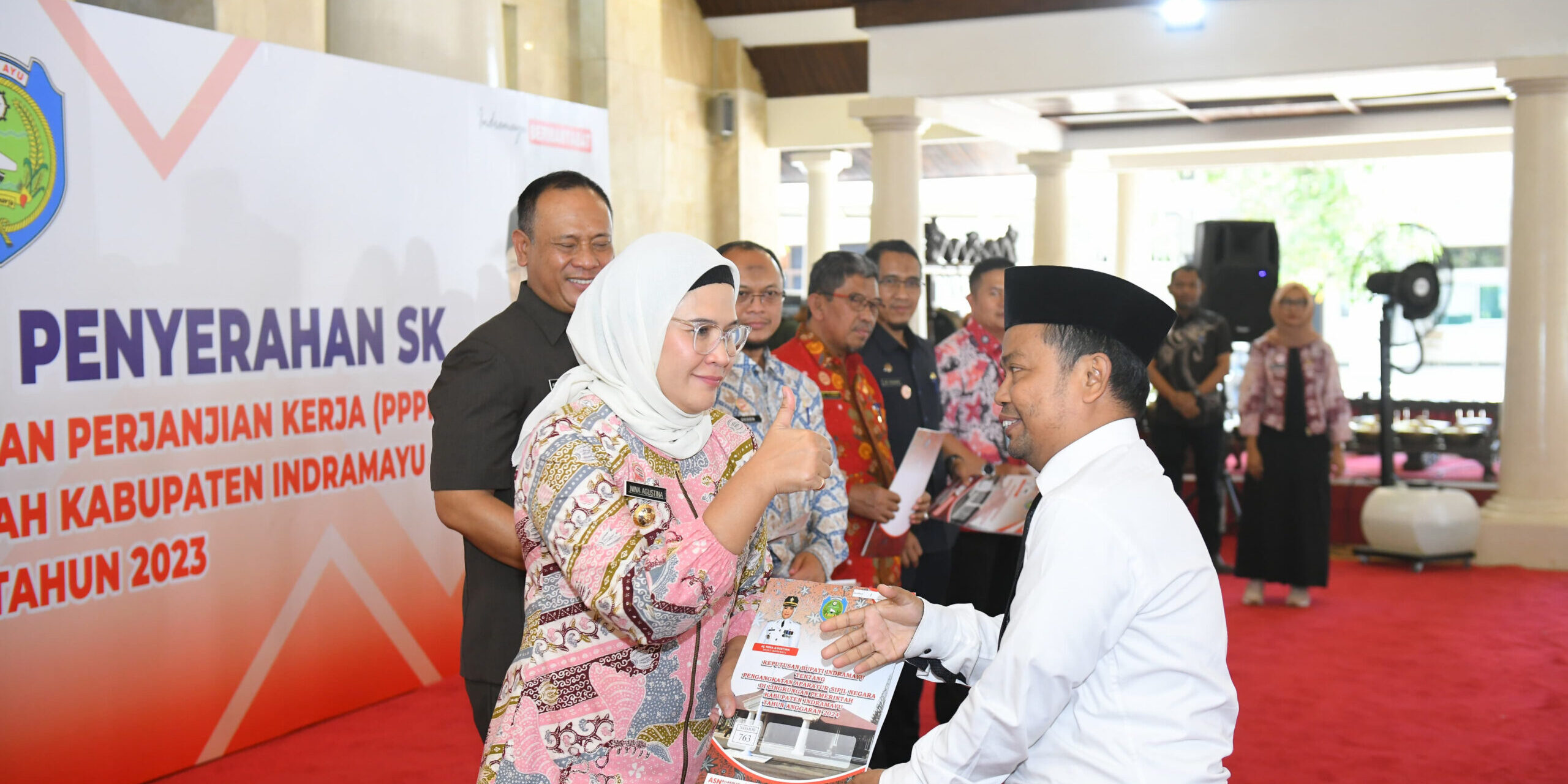 PAKKAR.ORG-INDRAMAYU JAWA BARAT:Bupati Indramayu Nina Agustina kembali serahkan SK Pegawai Pemerintah dengan Perjanjian Kerja (PPPK) di Lingkungan Pemerintah Kabupaten Indramayu formasi Tahun 2023, Kamis (6/6/2024) di Pendopo Kabupaten Indramayu.