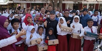 Pada kunjungannya di SDN Cinini tersebut, Bupati Nina Agustina juga menyerahkan bantuan sepatu kepada siswa SD dan SMP serta disambut meriah oleh para wali murid.(pakkar.org//ras/@deni-rewi)