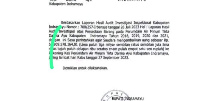 Teguran Bupati Indramayu Untuk Mantan Dirut Perumdam Indramayu Tatang Sutardi Tidak Mengembalikan Uang Rp 53,9 Miliar-Nihil…?