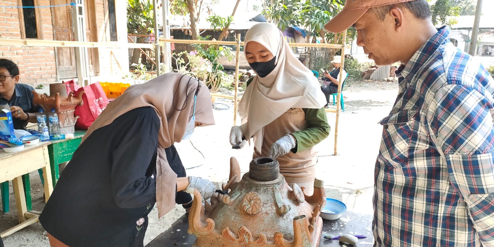 “Kita akan bersihkan dulu memolonya dari mikroorganisme dengan menggunakan bahan bahan kimia. Tujuannya agar memolo yang terbuat dari gerabah ini dapat bertahan lama,” jelas Sonny kepada media, Rabu (9/8).