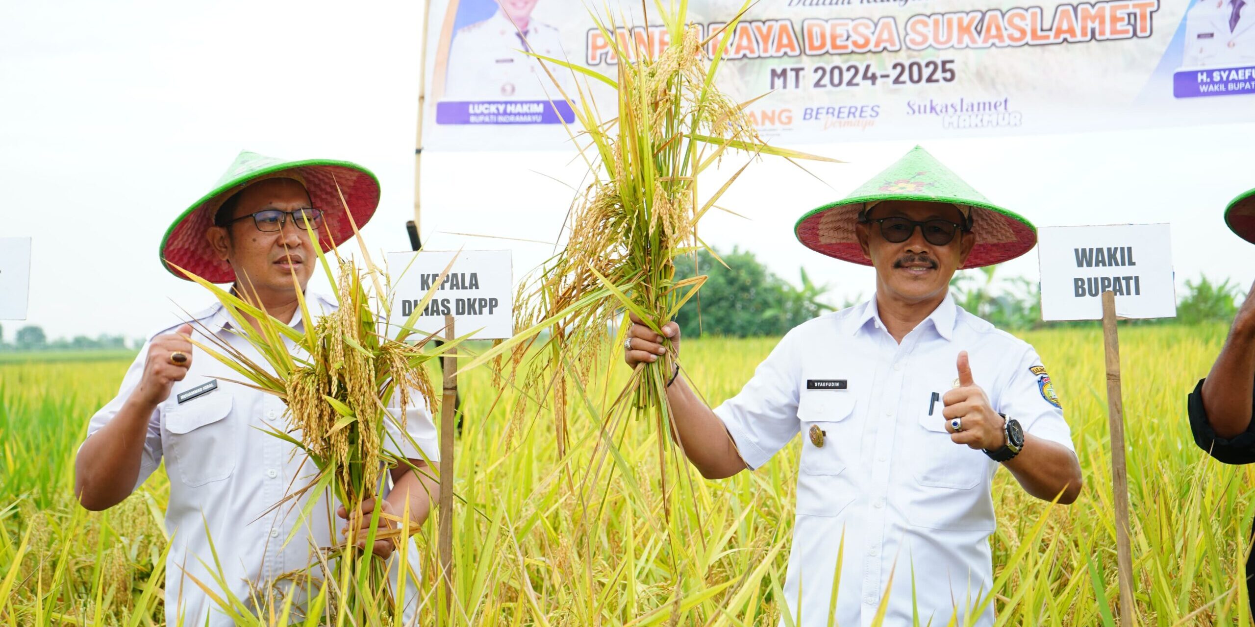 Wakil Bupati Indramayu  Syaefudin Apresiasi Petani Panen Perdana Di Lahan Tadah Hujan Desa Sukaslamet