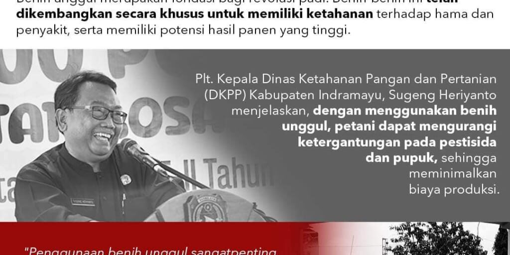 Plt. Kepala Dinas Ketahanan Pangan dan Pertanian (DKPP) Kabupaten Indramayu, Sugeng Heriyanto menjelaskan, dengan menggunakan benih unggul, petani dapat mengurangi ketergantungan pada pestisida dan pupuk, sehingga meminimalkan biaya produksi.